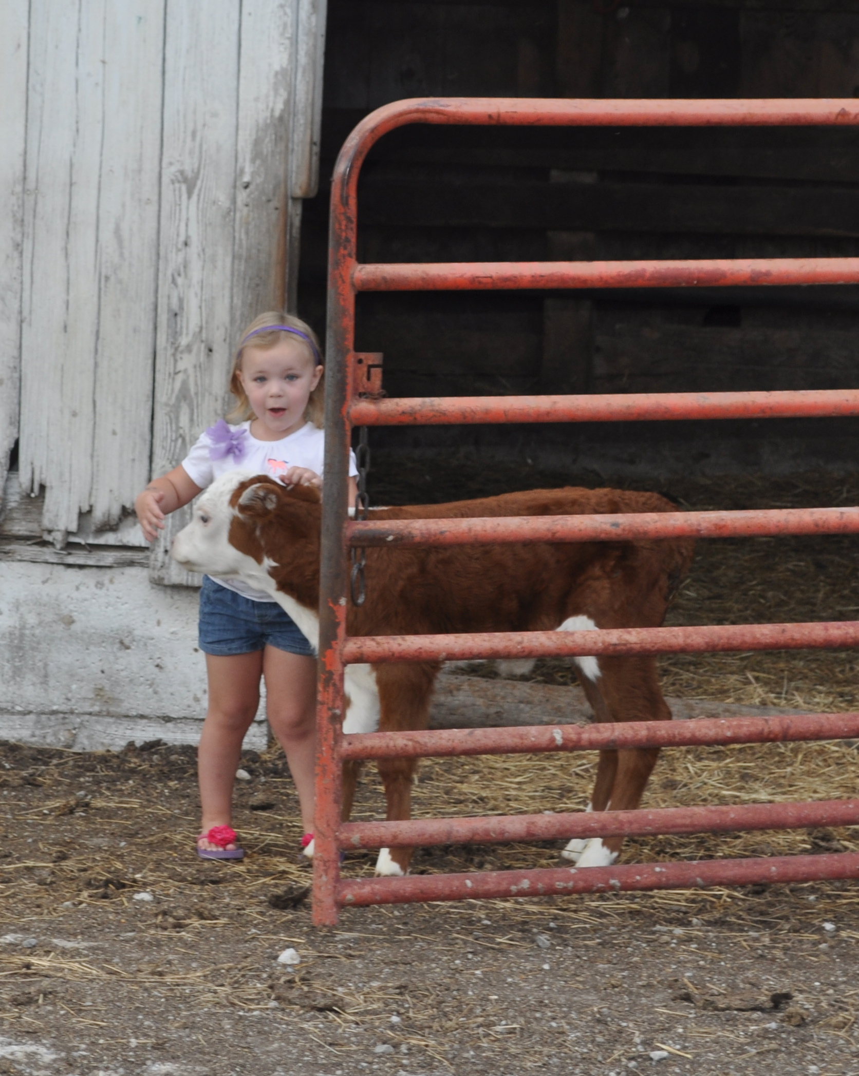 Happy and carefree, she sings as she skips, trying to entice Amber, the weeks-old bottle calf, to follow her lead. Reagan grabs the calf by the neck and kisses her.